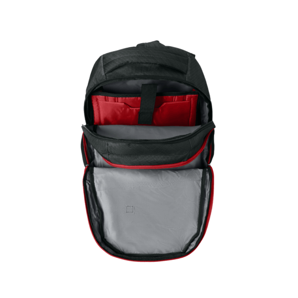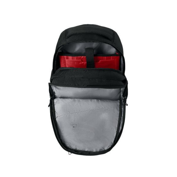 - Dual main compartments and an ultra-padded air mesh back
