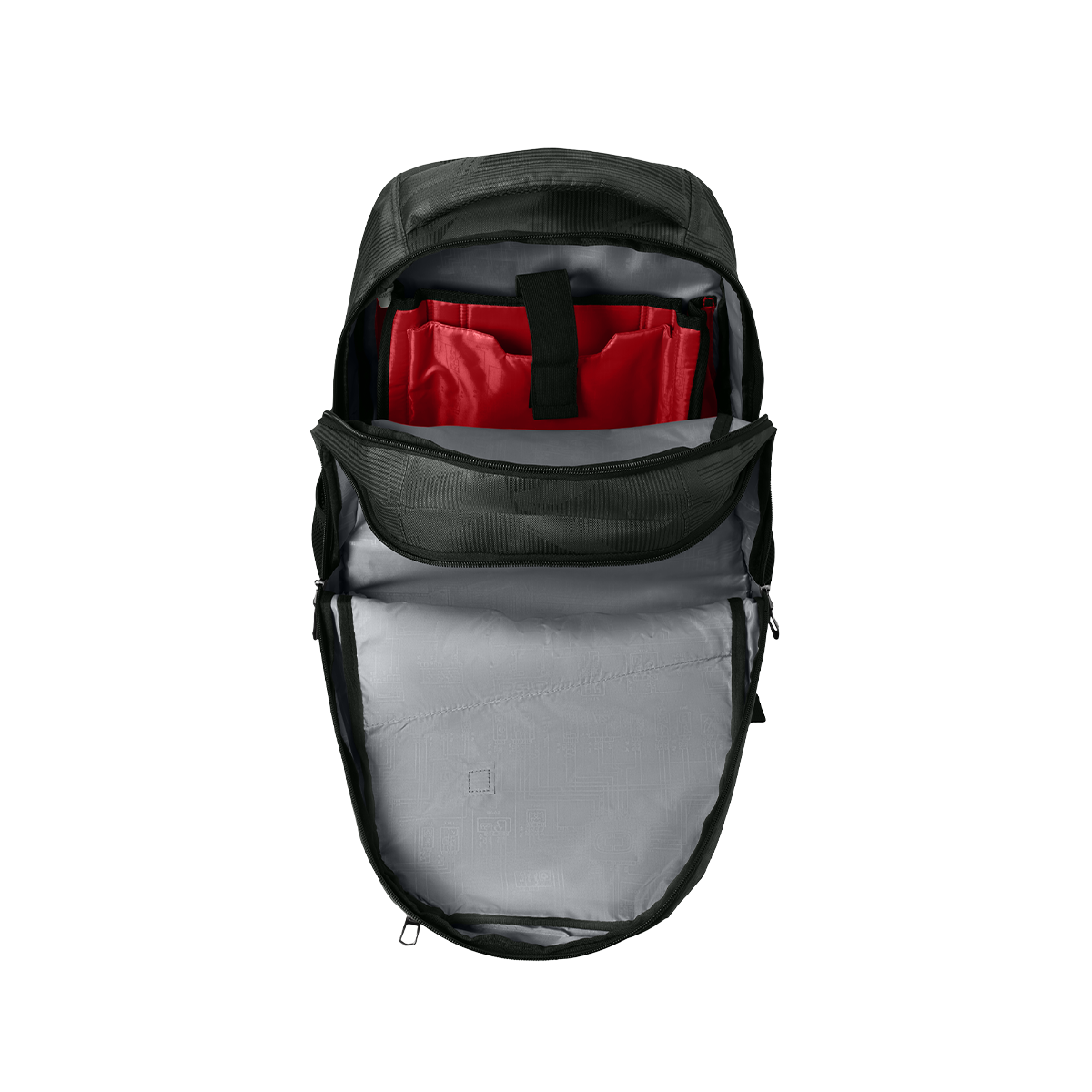 - Dual main compartments and an ultra-padded air mesh back